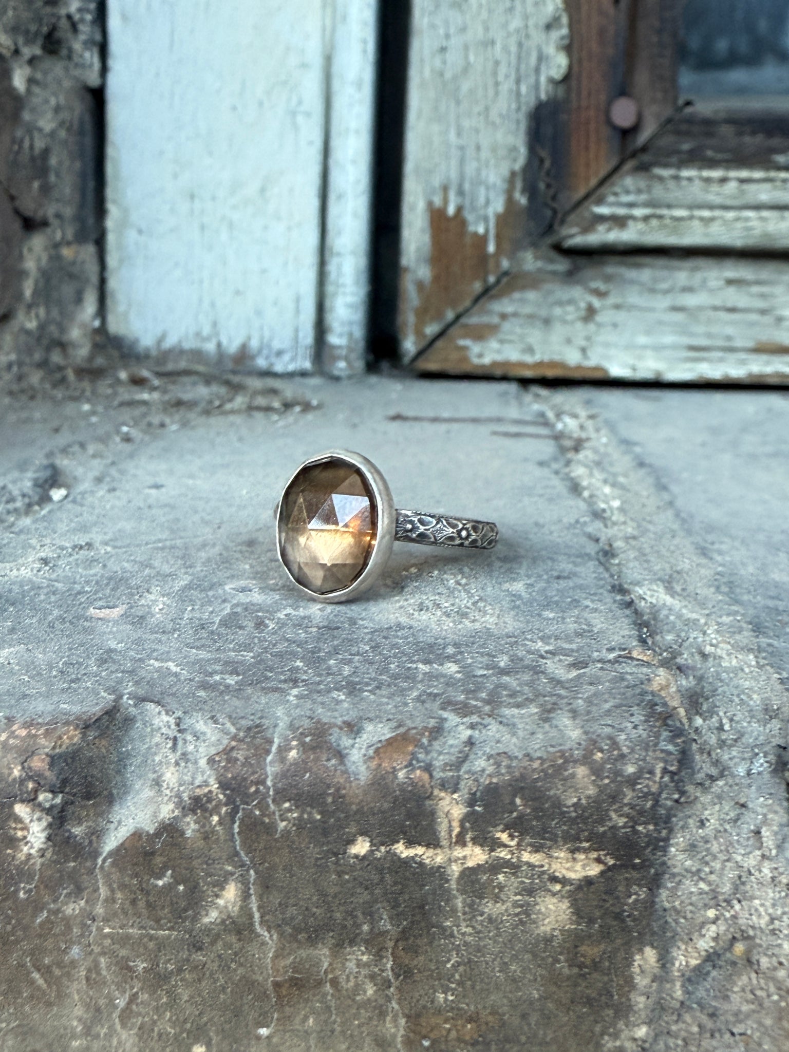 If you are looking for beautiful and captivating stones, with a distinct rose cut look, this is your ring.  The sparkle of Rose Quartz embodies energy of love and the deep feelings of the heart.
